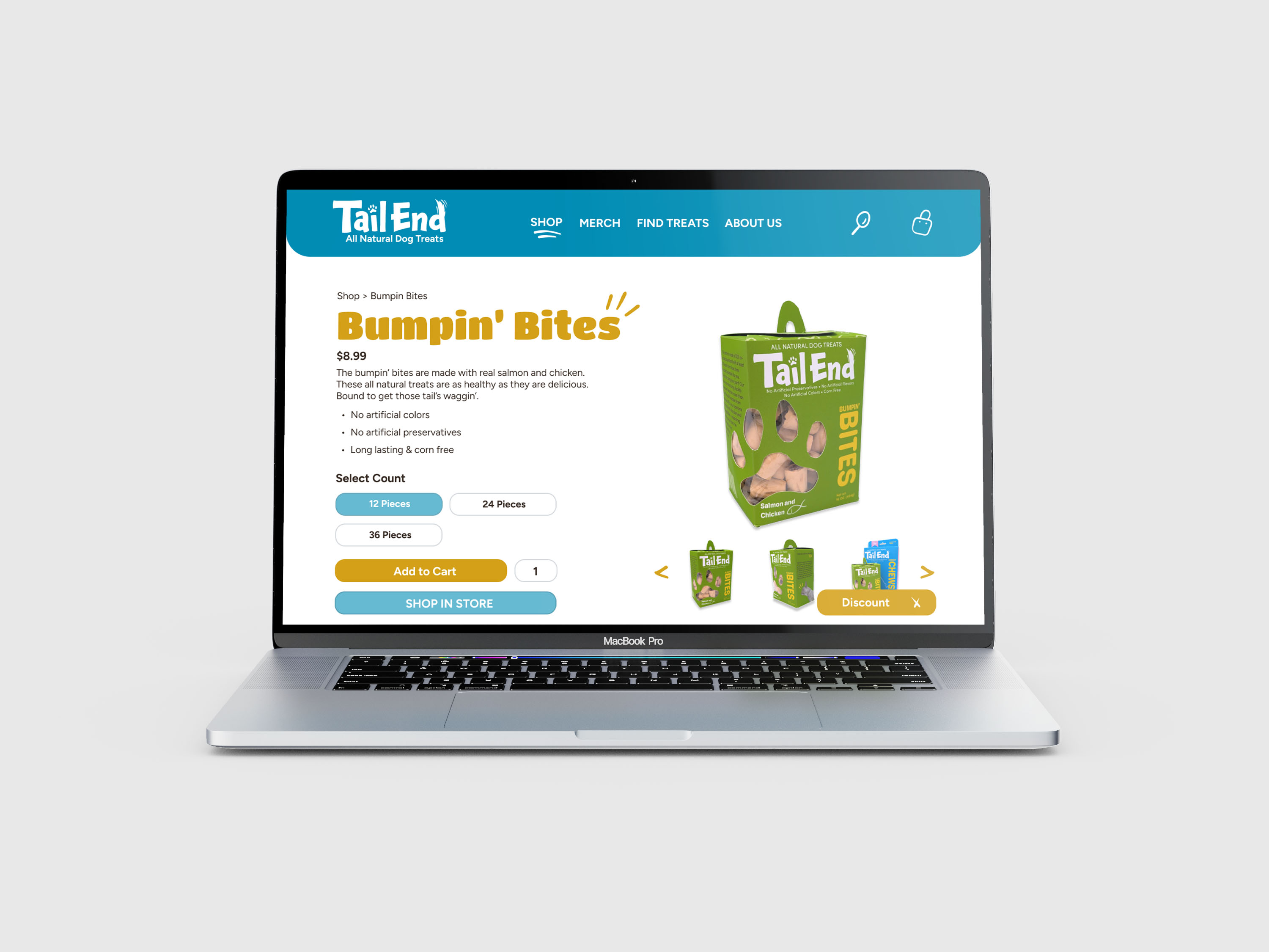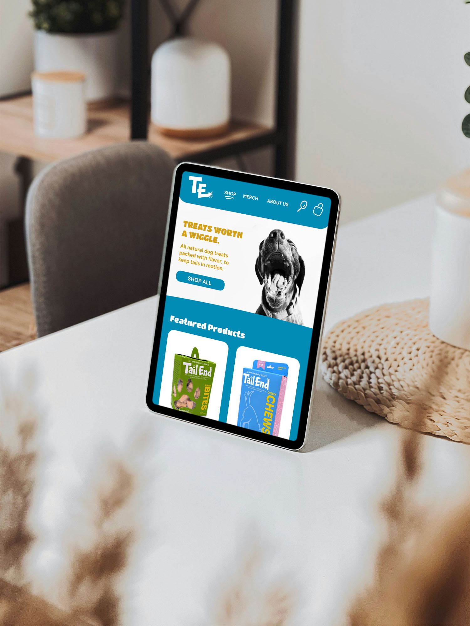 Tailend Treats is an all natural dog treat brand that needed a playful identity system that represented the healthy treats but didn't look lke the rest of the market. These treats feature hand illustrated items and precise layouts. This brand was expanded across many touch-points such as packaging, responsive web design, as well as Google advertisements. Each package features a unique die-line crafted to the unique needs of the brand, as well as included a unique dieline for dog toys.